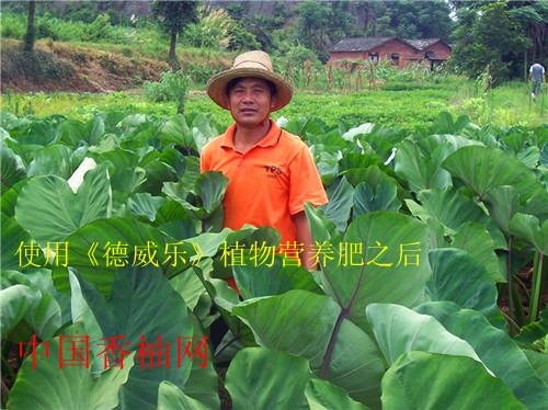 此为江永县桃川镇石头尾村的许丙生的种植的香芋,已经使用了15天,今天是,2011年7月10号,明天他准备喷<德威乐>植物营养肥第2 次