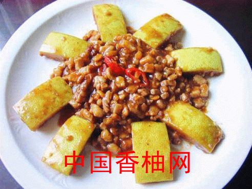 2、放入已经处理好柚皮;3、放适量的柱侯酱、东莞甜面酱即可上碟。特色:五花肉混合了柚皮的清香,更能提升肉味香味,散发出浓郁的乡土气息。