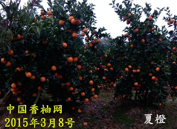 ①整形:夏橙宜采用自然园头形树形。于主干高30~40厘米处剪顶定干,新梢萌发后,在主干上选留生长健壮、分布均匀的枝梢3~4条为主枝,主枝开张角度40~45度,每条主枝配置2~3个副主枝,构成良好的、承受能力强的树冠骨架。