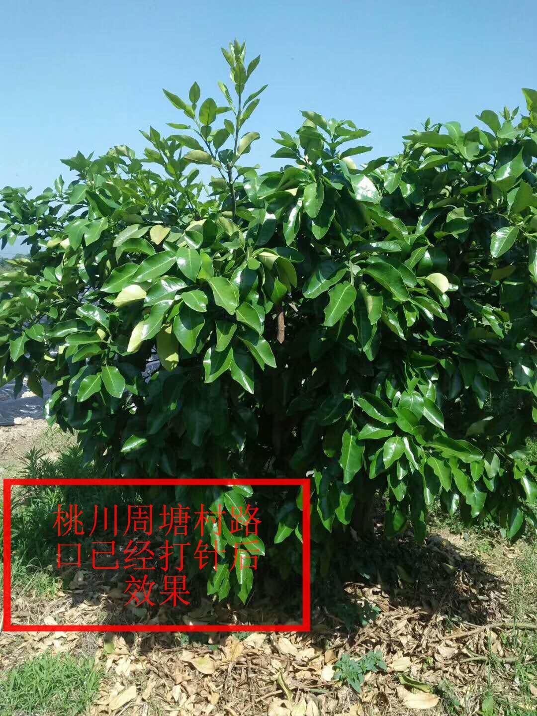 【注射后效果】: 柑橘果树打针吊液红黑胶囊具有高抗、特抗果树黄化叶病,补充中微量元素,具有预防和治疗双重功效,注射后快速修复病症,新叶速生,叶片变绿平展,不伤花叶,协调生长,坚持使用,效果显著。泰国植物果树消炎药安全性高,缓释性好,持效期长,大大节省农时,方便使用,并能长期储存。