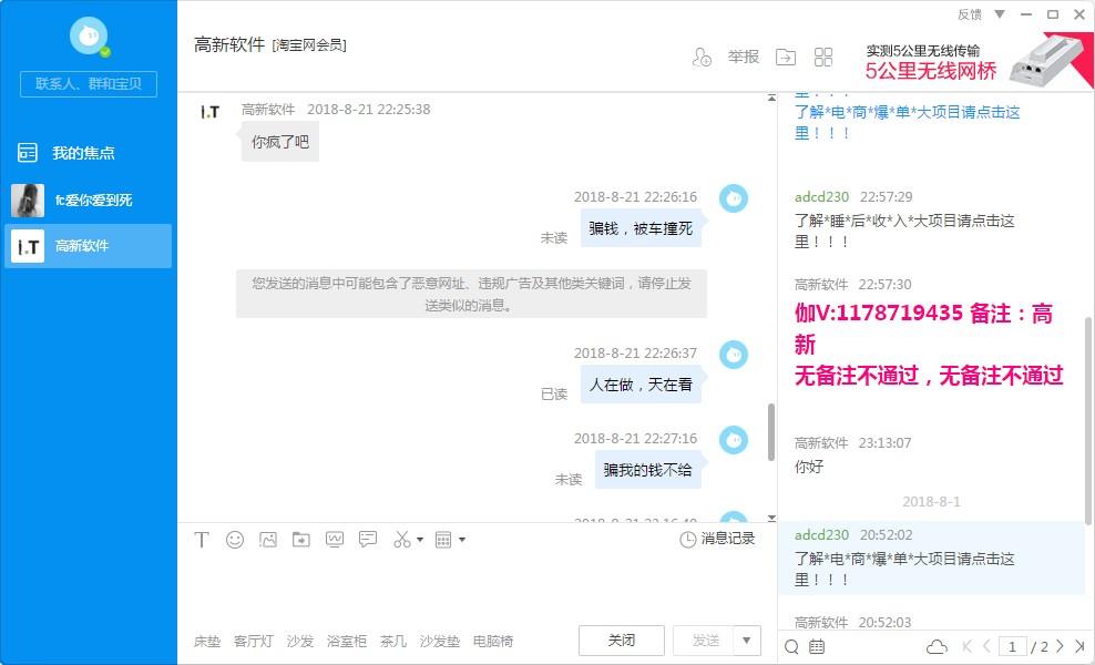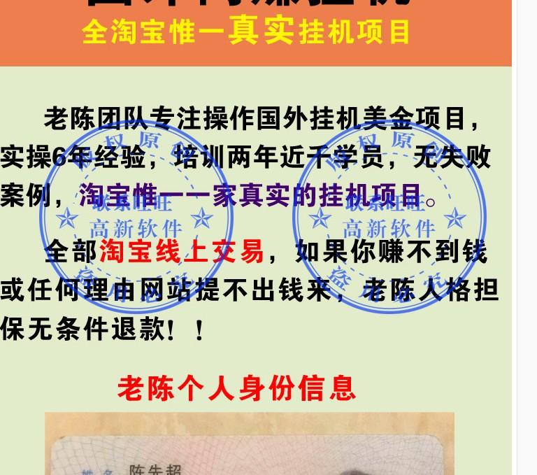 某网上挂机项目都是假的,什么老陈团队,老陈网赚项目1980元的都是假的,公布四个淘宝旺旺号,是骗子大家不要买,《1》高新软件《2》》fc爱你爱到死《3》蓝德昊福《4》 l420528565都是骗子,都是一个人,他的微信1178719435,v3dfcad5,ggvvv22也是骗子的3个微信,QQ1178719435是骗子的QQ,大家不要相信退款,他的链接是从阿里巴巴过来的,到时他会发个脚本骗你的好评,他会发一个EV的脚本过来,