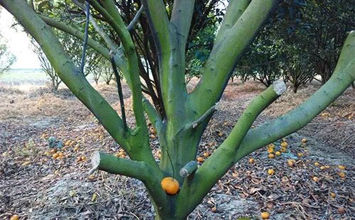 柑桔属亚热带常绿果树,性喜温暖湿润的气候,这样的气候不仅适宜柑桔橘生长,也伴随着另一种植物的滋生——青苔。可能你已经注意到了,但你觉得没什么影响,但事实真像你想的那样吗? 青苔常长在地表、枝干、叶片,削弱植株的光合作用,致使树体生长不良,树势衰退等,严重影响柑橘的产量与品质。 很多老园区易长青苔,青苔通过寄生在枝干上吸收树体养分,导致树体衰弱,养分流失,弱树更弱,形成恶性循环。 但是 现在才种的果树也有这种现象。